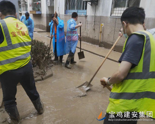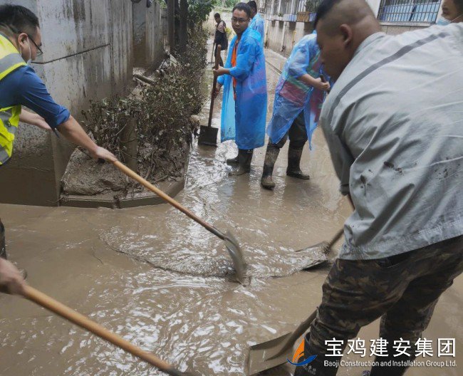 災(zāi)情來臨,義無反顧;災(zāi)后清淤,勇挑重擔?!昂樗淹?,我們不退”,寶雞建安集團洪災(zāi)重建小分隊逆行風(fēng)雨中,以實際行動踐行錚錚誓言,在重建家園的大愛隊伍中,為渭濱區(qū)一方群眾筑牢了一道安全堤壩!